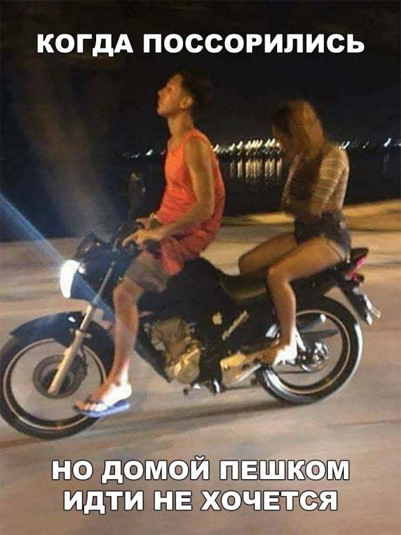 Маленькие неурядицы наверное во всех семьях есть,но надо как то всё решать по мирному.А девушка на мотоцикле вот упадёт и голову разобьет себе довыпендривается