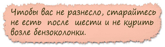 Чтобы вас не разнесло постарайтесь не есть после шести, не курить возле бензоколонки и не возражать жене.