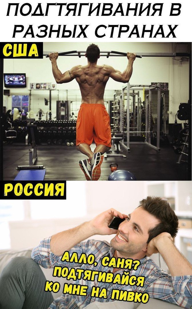 А у нас и них одинаково! Подтягивайся на пивко - у нас. У них - подтягивайся на виски...