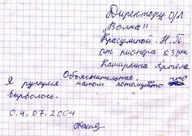 Сегодня вечер субботы, а поэтому нужно всеми силами как-то отдыхать. В этом посте я решил сделать небольшой обзор интересных и смешных записей (кои нашел в Интернете), сделанных учениками. Отсортировал от различного "мусора", сделанного специально школьниками или их родителями (так не интересно).