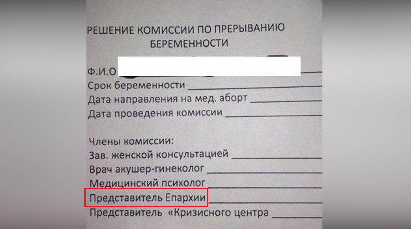 "Жительницы Белгородской области теперь будут ходить в церковь, чтобы им разрешили сделать аборт. Местный Минздрав включил в состав комиссии батюшек из местных приходов, которые должны силой веры и креста отговаривать женщин от греха", - сообщил канал Mash и опубликовал фотографию обходного листа, который, как утверждается, женщины должны предоставлять перед записью к врачу.