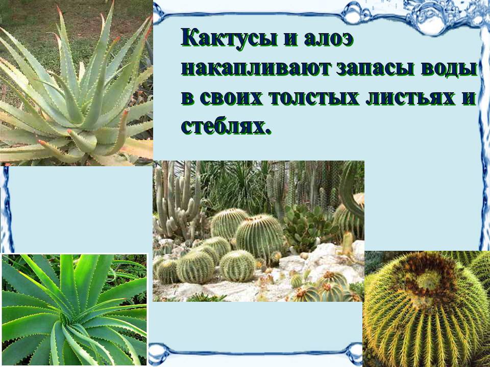 Кактусы - это семейство суккулентных растений, которые можно отнести к группе стеблевых суккулентов. Большинство кактусов на 85-90% состоят из воды, которую кактусы не только накапливают, но и очень экономно расходуют. Хранилищами для воды у кактусом могут быть не только стебли, но и листья, а также корни (существуют виды, у которых корень похож на репку).