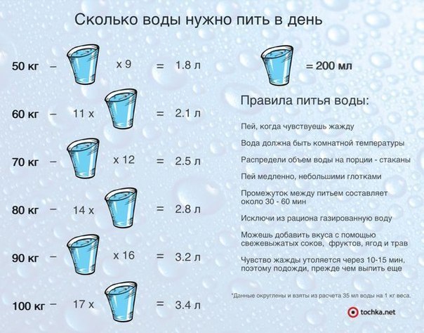 Пью, столько сколько требует организм, люблю водичку с лимончиком..