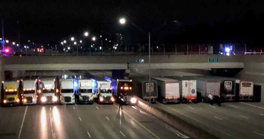 Дальнобойщики выстроили в ряд фуры, чтобы помешать самоубийце прыгнуть с моста