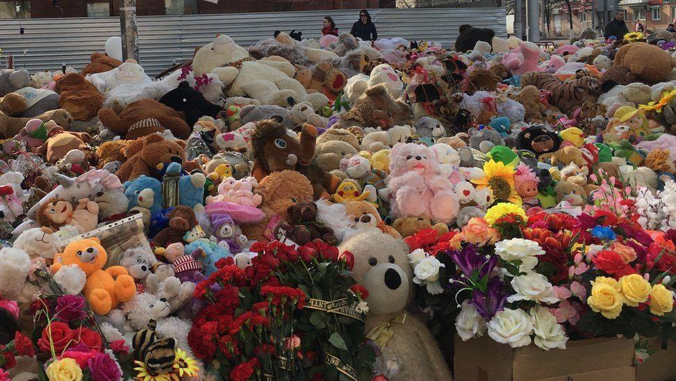 Спустя месяц к обгоревшему и искореженному зданию торгового центра Зимняя вишня жители Кемерова продолжают нести цветы в память о погибших в пожаре.