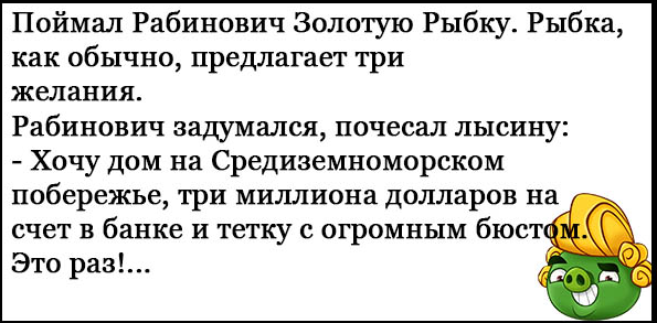 — Фима, ты слышал? Рабиновичу прописали строгую диету.
