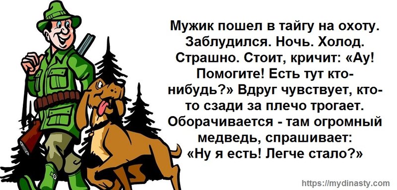— Послушайте, Джон, — спрашивает один охотник другого, — почему ваша собака всегда бросается мне под ноги, когда я стреляю?