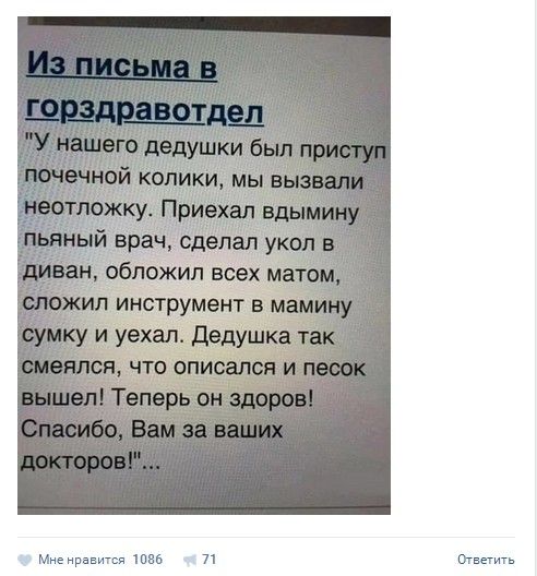 Спасибо большое,будем смеяться больше и чаще,только чтобы люди которые проходили мимо нас не повертели у виска,смеяться хорошо,но без причины это уже диагноз