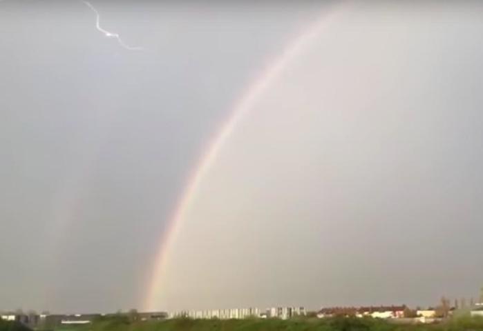 Одна из жительниц Великобритании сняла ролик, где показан неустановленный предмет, упавший с неба. Он рухнул во время грозы.