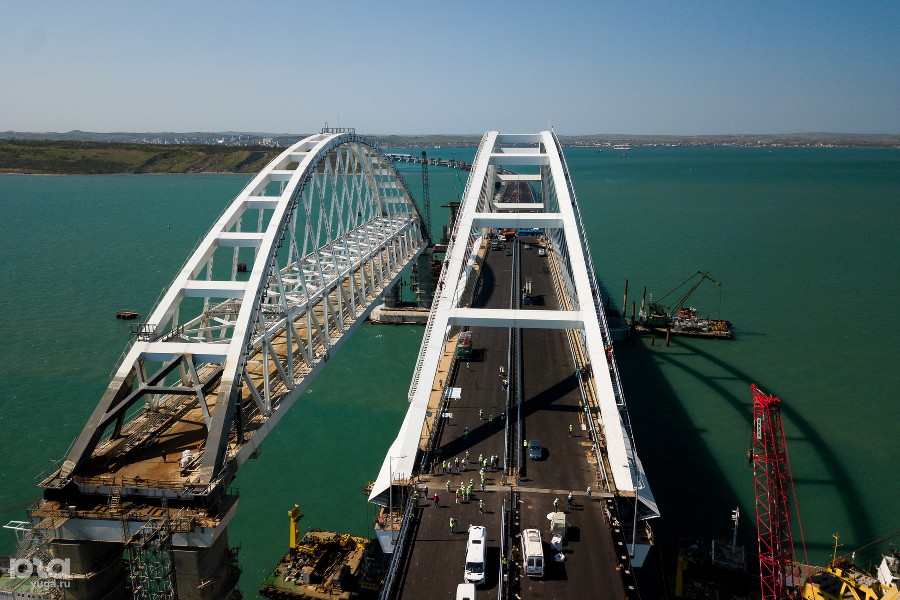 Строители завершили укладку дорожного покрытия моста в Крым.