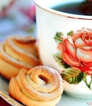 Еще горячие розочки посыпаем сахарной пудрой или кокосовой стружкой, шоколадом.