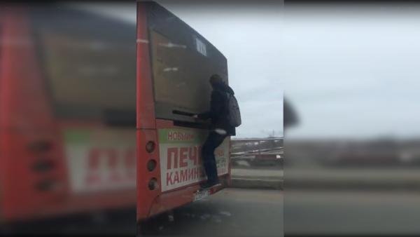 В Северодвинске Архангельской области подросток решил прокатиться на автобусе, не заходя в него. За таким экстремальным занятием зацепера и засняли проезжающие мимо автомобилисты.