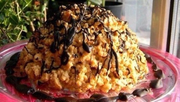 Выливаем в крошки крем. Все тщательно перемешиваем. Берем большую гладкую тарелку и выкладываем торт горочкой. Убираем торт в холодильник min часа на 3 - чтоб торт "схватился". Лучше на ночь.