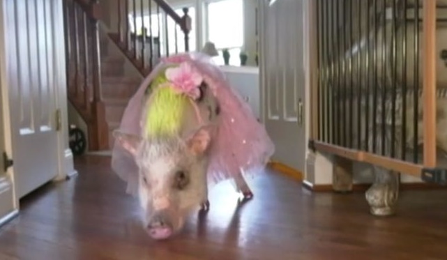 Сказочная жизнь: в США свинка живет в особняке, ходит в юбках и играет на пианино.