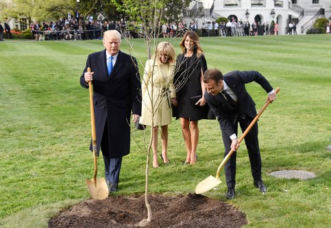 Президент Франции Эммануэль Макрон посетил Вашингтон с супругой Бриджит в честь 250-летия отношений между государствами. Дерево должно было символизировать крепкую дружбу между США и Францией. Саженец привезли из знаменитого леса Белло, где в 1918 году произошла первая крупная битва с участием американских солдат в Первой мировой войне.