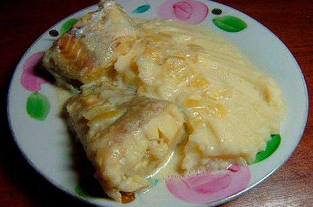 Минтай Жареный с Подливкой и Картофельным Пюре
