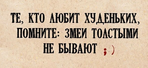 Хоть всегда была змеей, но считаю, что мужчины в своём предпочтении к стройняшкам здорово ЛУКАВЯТ, придерживаясь МОДНЫХ традиций. Сама люблю смотреть БАЛЕТ ТОЛСТУШЕК, вот где поржать можно!
