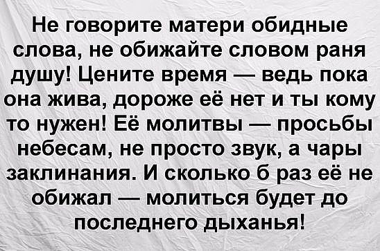 Очень хорошие слова!!!Берегите своих близких и родных людей