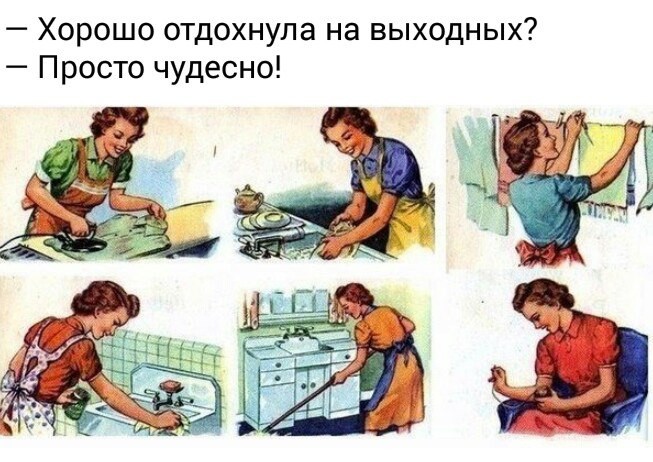 Всю жизнь женщина так отдыхает.