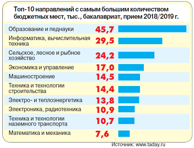 Во-первых, количество бюджетных мест в этом году увеличено с 298 тыс. до 315 тыс. для бакалавров.