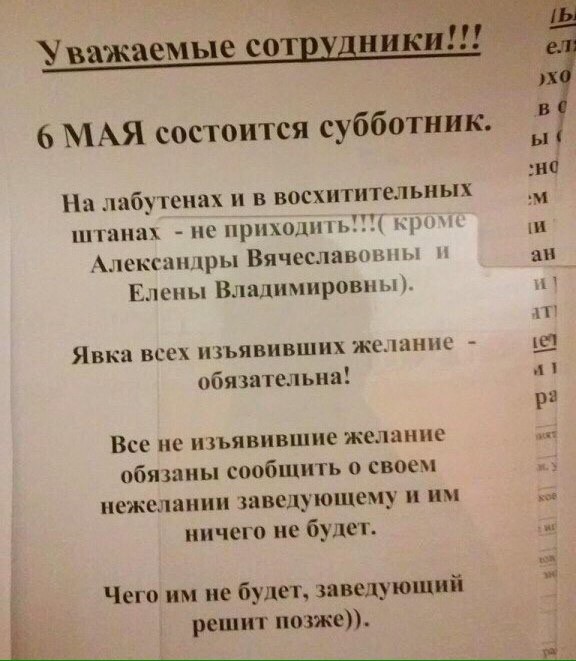 хотел бы я попасть на этот субботник, поглазеть на Александру Вячеславовну и Елену Владимировну. Ещё можно успеть. Автор, где будет субботник?