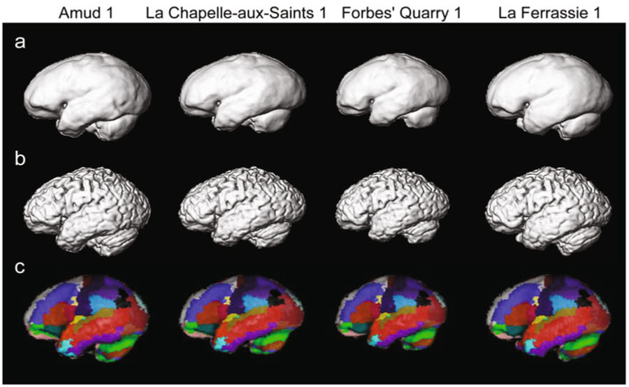 Ученые сначала измерили форму внутренней поверхности черепов неандертальцев. Затем с помощью компьютерного моделирования они постарались «поместить» внутрь неандертальского черепа мозг современного человека, деформируя отдельные его части. В результате получилась модель мозга приблизительно такого же размера, однако совсем другой формы. Например, мозжечок, отвечающий, в частности, за речь, память и способность обдумывать несколько вещей одновременно, оказался в полученной модели гораздо меньше, чем у современного человека. А вот размер затылочной доли, в которой располагается зрительная кора, отвечающая за восприятие зрительной информации, у неандертальцев оказалась больше.