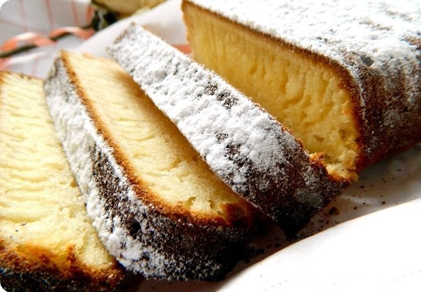 4. Готовый кекс охладить 10 минут в форме, потом вытащить его и дать остыть полностью. Перед подачей посыпать сахарной пудрой и нарезать кусочками покрупнее.
