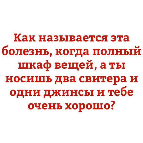 На самом деле я не знаю, как это называется, но эта болезнь сильно развита у меня - влезаю во что нибудь одно и снимаю только, чтобы постирать, в это время ношу аналогичную и так для разной погоды использую по 2 вещи, остальное лежит без дела. Говорят, что эта особенность свойственна тем, кто по гороскопу относится к знаку Рыб. Я просто перестала покупать лишнее, так как ношу только какие ни будь 2 - 3 вещи, то и не нужно.