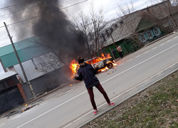 Уральцы устроили фотосессию на фоне полыхающего автомобиля.