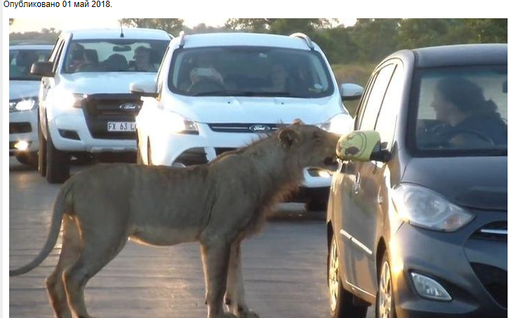 Очевидец снял и опубликовал видео того, как любопытная львица подошла к автомобилю с туристами и попыталась открыть дверцу. Данные события произошли на днях в национальном парке Крюгера в ЮАР.