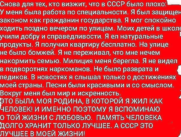 Я подписываюсь под каждым словом этого высказывания, так как сама жила в СССР.