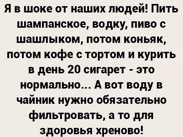 Пью из-под крана.Дожила уже до 72 лет. Хотя и с камнями, где только можно. Говорят из-за воды.