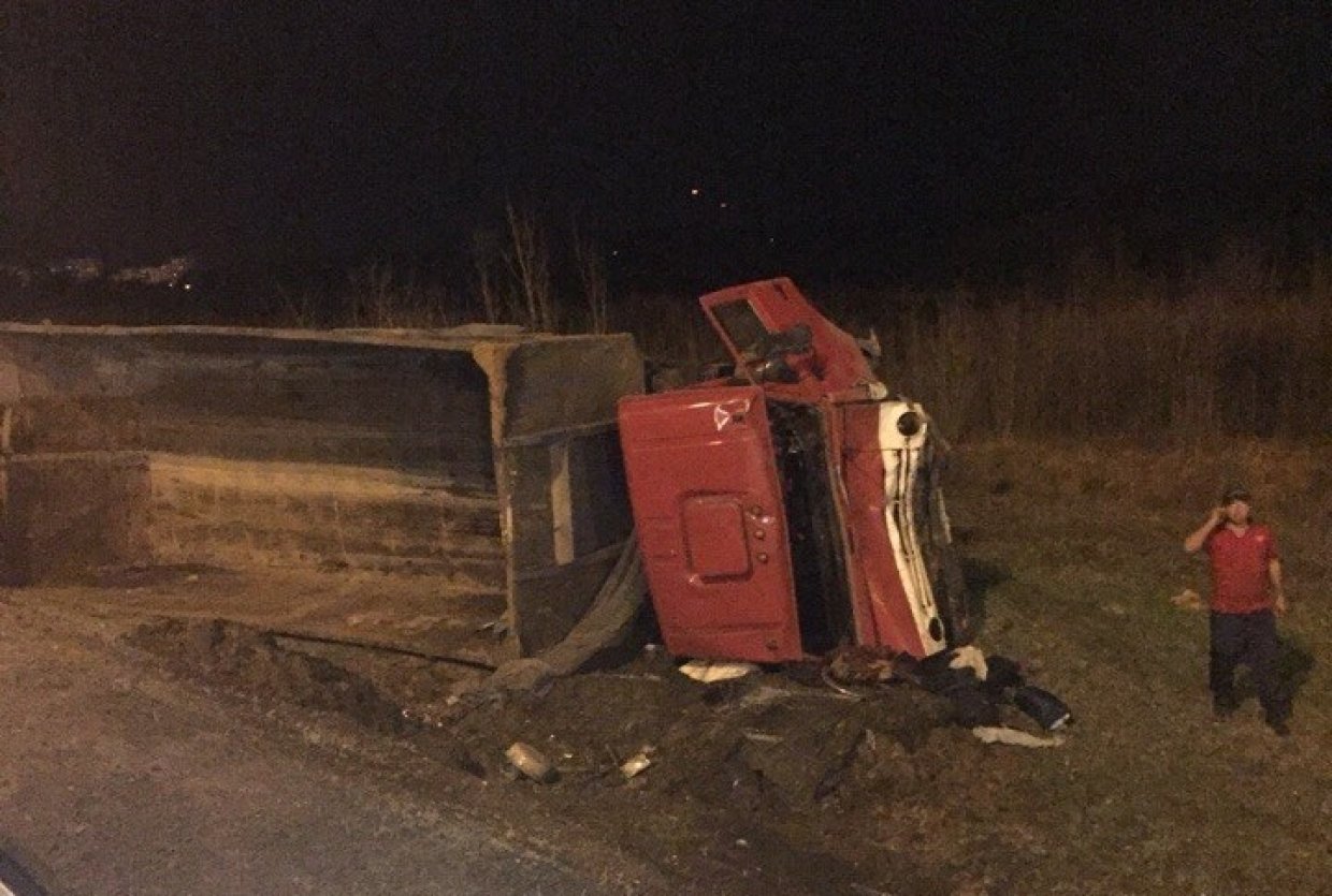 Как сообщают очевидцы из социальных сетей, авария произошла вечером 3 мая, когда столкнулись две фуры, в результате чего одна из них оказалась в кювете.