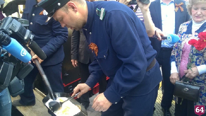 Саратовцев машинисты поезда «Победа» угощали яичницей на лопате