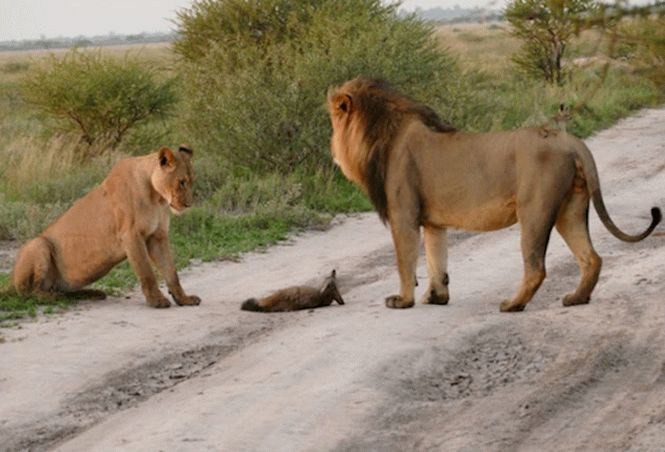 Разозлившись, лев обратил свой взор на детенышей львицы. Он решил, что должен отомстить львице и направился к львятам. Это спровоцировало мать, и через несколько секунд возникла настоящая «рЛьвица не собиралась сдаваться. Осознав это, лев бросил свою затею и удалился в поисках обеда в другом месте.