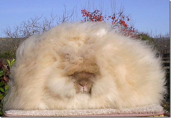 Это млекопитающее из породы грызунов. Животное это выглядит очень эффектно, бывают особи, у которых шерсть достигает длины до 80 см. Шерсть эта очень ценится, и из нее приготавливают самые разнообразные полезные вещи, даже белье, чулки, перчатки, платки и, наконец, просто ткани. Килограмм шерсти ангорского кролика очень ценится, и его можно легко продать. Один кролик может доставить такой шерсти в год до 0,5 кг, но как правило доставляет меньше. Разводится чаще всего женщинами, почему его иногда и называют «дамским». Средний вес — 5 кг, длина туловища 61 см, обхват груди 38 см. Еженедельно необходимо расчесывать этих кроликов, так как, если не следить за их шерстью, они выглядят просто ужасно. Что тут сказать — действительно очень необычное животное.