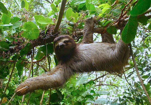 Это неполнозубое млекопитающее относится к семейству Bradypodidae. Обитает в Центральной и Южной Америке. Почти все время ленивцы проводят, вися на ветке дерева спиной вниз, 15 часов в сутки ленивцы спят. Физиология и поведение ленивцев направлены на сильную экономию энергии, т.к. питаются они только листьями. Переваривание занимает около месяца. У сытого ленивца? Веса тела может приходиться на еду в желудке. У ленивцев длинная шея, чтобы доставать листья с большой территории, не передвигаясь. Температура тела активного ленивца составляет 30-34 °C, а в покое ещё ниже. Ленивцы очень не любят слезать с деревьев, потому что на земле они практически беспомощны. Ко всему прочему, это требует больших затрат энергии. Слезают вниз они для оправления своих естественных потребностей, которое совершают всего раз в неделю (у них большой мочевой пузырь) и иногда для перемещения на другое дерево, где для дополнительной экономии энергии часто собираются группами в развилках ветвей. Предполагают, что при этом они лениво спариваются. Масса тела ленивцев разных видов варьирует от 4 до 9 кг, а длина тела составляет около 60 сантиметров.