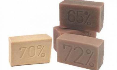 Выбирая это спасительное мыло предпочтение нужно отдавать обычному серому куску, знакомому нам всем с детства, так как чем красивее упаковка, чем приятнее запах от положенных в мыло отдушек, тем больше вероятности того, что при его производстве были использованы синтетические материалы, а тогда положительный эффект от использования мыла может быть равным нулю.