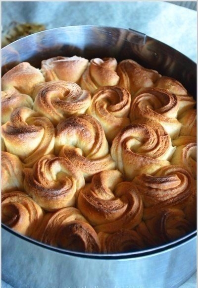 9. Соединить 3 круга теста друг с другом. Скатать их плотно вместе. Затем разрежьте в середине ножом. Вы получите два цветка.
