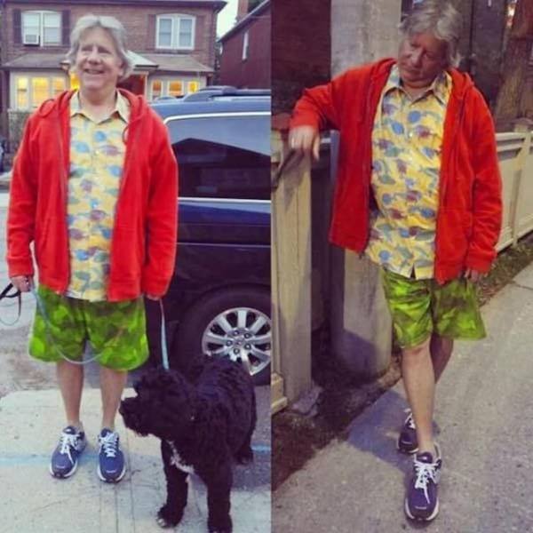Мужчина в любое время суток должен выглядеть как мужчина ,а не оно и не понятно на что похоже. К себе нужно относиться с уважением и достоинством.Этот дядя сам себе на уме.