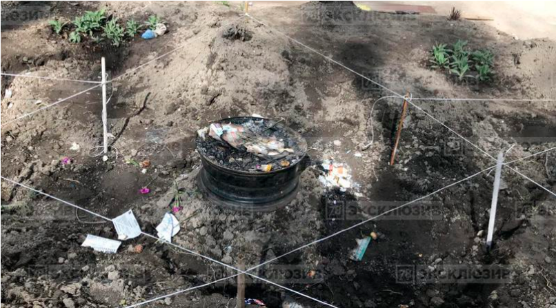 Житель Петербурга в состоянии алкогольного опьянения устроил во дворе дома по улице Карпинского весьма странный ритуал. Он соорудил различные конструкции вокруг сквера, затем облил все бензином и поджег.