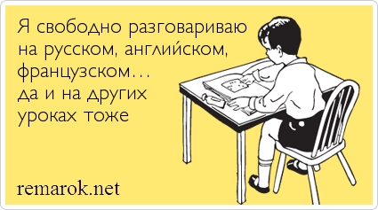 Школьник: Я свободно разговариваю на русском, английском, французском, да и на других уроках тоже. anekdotov.net