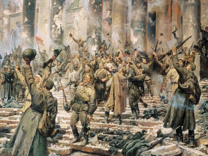 Завершающий этап войны против фашизма - это история праздника 9 мая. День Победы не состоялся бы без мужества наших отважных воинов. Войскам Советского Союза понадобилось долгих четыре года, чтобы выгнать оккупантов с родной земли. В апреле 1945 года Красная армия стояла под стенами Берлина. 1 мая, в ходе наступательной операции в районе Рейхстага, около 3:00 ночи над крышей здания взвилось Знамя Победы. Хотя здесь стоит отметить, что информация была обнародована поспешно. Ведь еще 30 апреля по радио огласили, что штурмовой флаг водружён над зданием парламента.