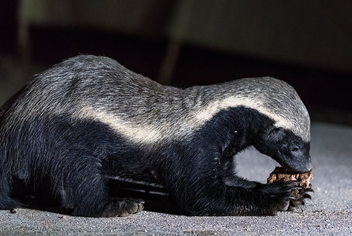 Он запросто разоряет пчелиные гнезда, при этом пчелы не могут его прокусить. Более того, он очень любит змей. Иногда они его кусают. В этом случае он падает замертво и может так проваляться около получаса. За это время его организм переварит яд и он оживает.