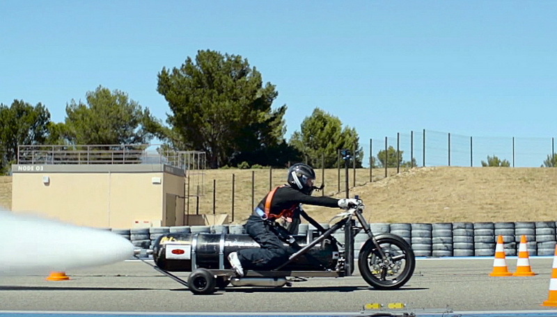 Франсуа Жисси прославился летом 2014 года, когда смог разогнаться до 333 км/ч на специально сконструированном велосипеде — двухколёсный транспорт француз оснастил реактивным двигателем, работающем на перекиси водорода. Еще тогда он заявил, что постарается улучшить своё достижение и в перспективе намерен преодолеть отметку «400 км/ч».