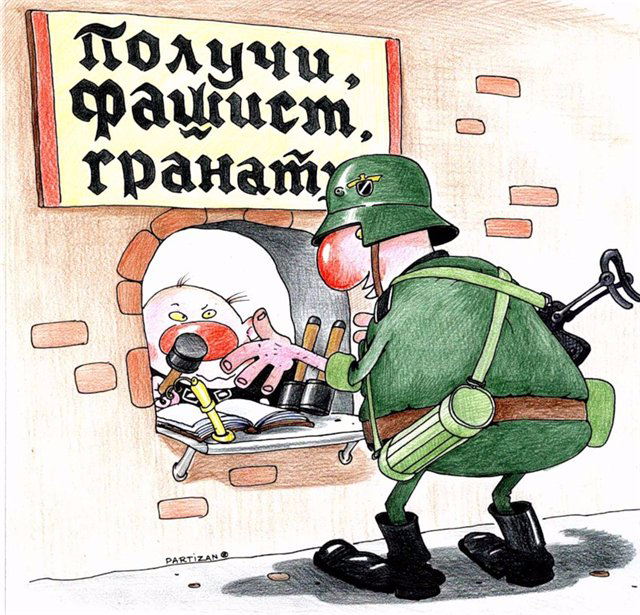 Бойцы поднимаются в атаку. Немецкая молодежь в панике, а старый фриц опять их удерживает от бегства. Нашим пришлось опять залечь.