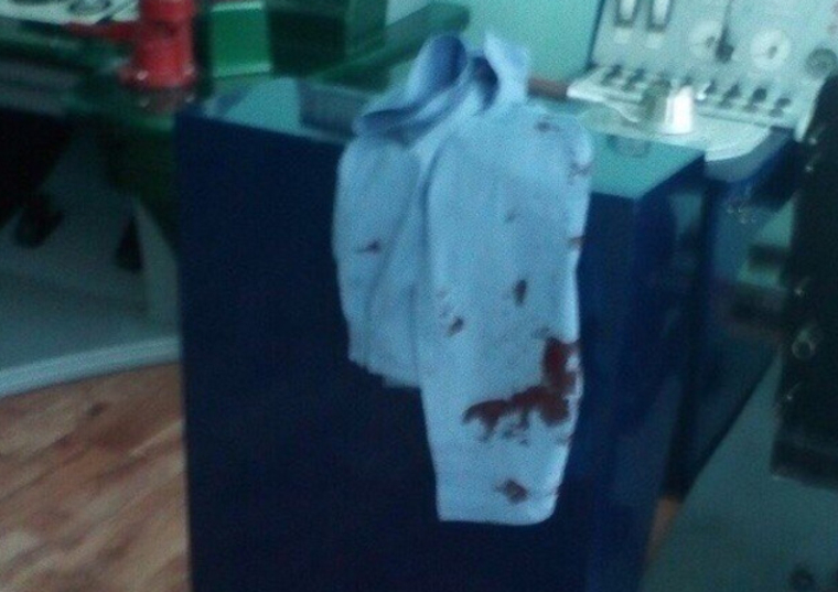 На кадрах видно огромное пятно крови на полу мастерской и висящую на станке рубашку в темно-красных пятнах. Кроме того, на одном из снимков изображены ноги лежащего человека. Фотографии публикуют в соцсетях.