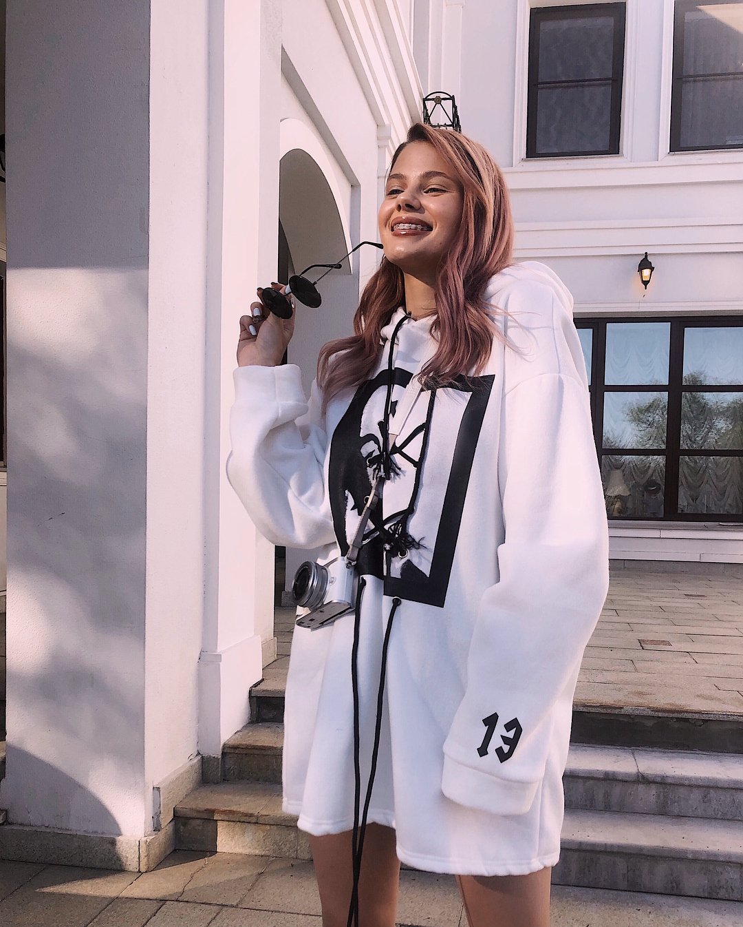 В сети бурно обсуждают преображение молодой жены Никиты Преснякова Алены Красновой. На новом фото, которое появилось в ее аккаунте сервиса Instagram****, модель предстала совершенно в другом образе. Ее подписчики привыкли к нежным, утонченным и женственным нарядам, которые она показывает на фотографиях, однако в этот раз увидели ее в тяжелой мешковатой толстовке, которая никак не подчеркивала прелести ее фигуры. Тем не менее, больше всего их поразили брекеты на ее зубах.