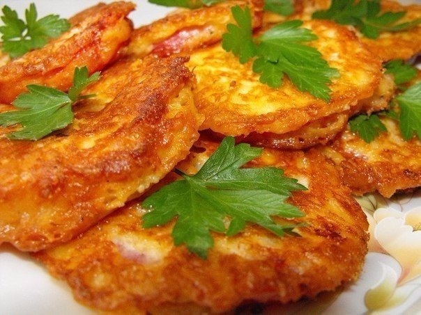 Ингредиенты:-3 средних помидора-150 гр твердого сыра-2 яйца-2 ст.л. майонеза или сметаны-1-2 ст.л. муки-соль, перец по вкусу-растительное масло для жарки-петрушка для украшения