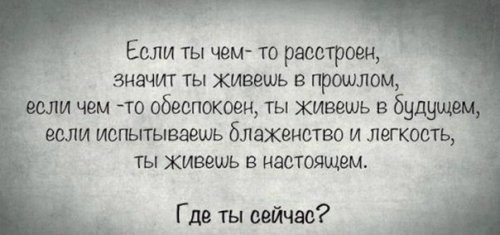 Что думать о прошлом -оно уже прошло ,о будущем -оно не предсказуемо ,а настоящее быстро переходит в прошлое и и за него тоже не стоит переживать